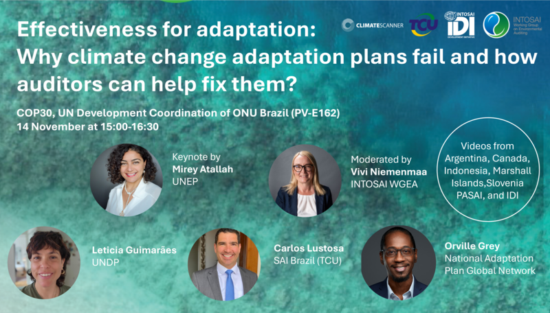 V teh dneh v brazilskem Belému poteka 30. zasedanje pogodbenic Okvirne konvencije Združenih narodov o spremembi podnebja (COP30). Delovna skupina INTOSAI za okoljsko revidiranje (WGEA) je organizirala dva stranska dogodka, ki temeljita na rezultatih nedavno izvedenega projekta skupne mednarodne revizije ukrepov za prilagajanje podnebnim spremembam, v katerem je sodelovalo tudi Računsko sodišče Republike Slovenije. Vrhovna revizijska institucija (VRI) Brazilije je gostila več dogodkov, povezanih z orodjem ClimateScanner, INTOSAI pa je na konferenci prvič sodelovala z lastnim paviljonom.